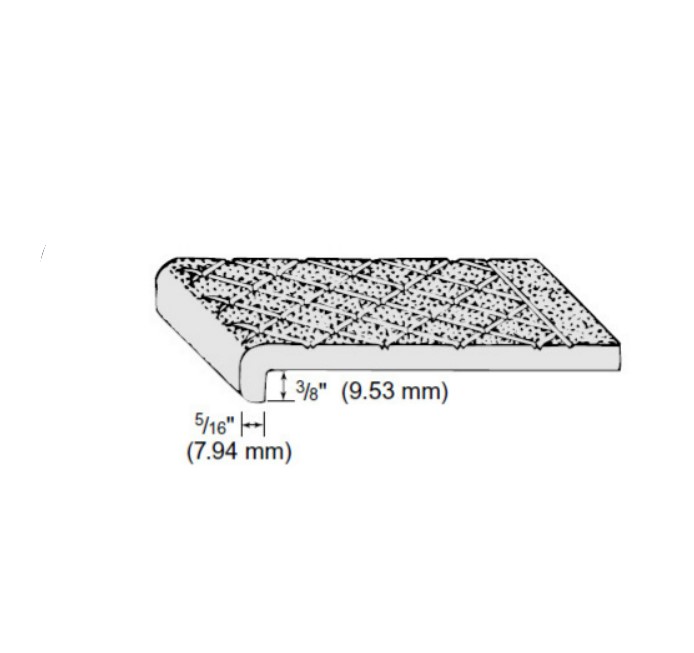 Type 101SP provided in  ALUMOGRIT® (cast aluminum) Its chief use is as nosings on steel-pan concrete-filled stairs. Type 101SP can be 3″, 4″ or 6″ wide and 5/16″ thick (other widths and thicknesses may be possible – please consult factory).