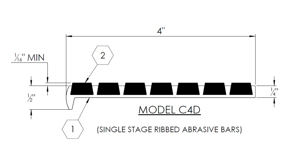 Economical and easy to install, Nystrom Ribbed Bar Abrasive Nosing is designed for stairs and is perfect for indoor and outdoor poured concrete stair applications where extra safety is desired or required by code. The ribbed abrasive grit pr EcoTread™ can be customized for multi-color treads.