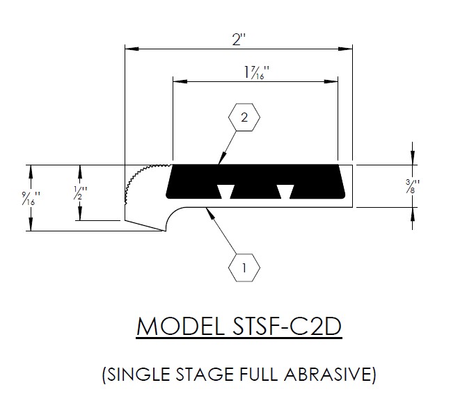 The redesigned Full Abrasive Stair Tread and Nosing is made from an extruded aluminum base with abrasive material locked into the channel. The material is consistent throughout the tread and features a new durable, serrated aluminum nose. Ideal for indoor and outdoor applications.