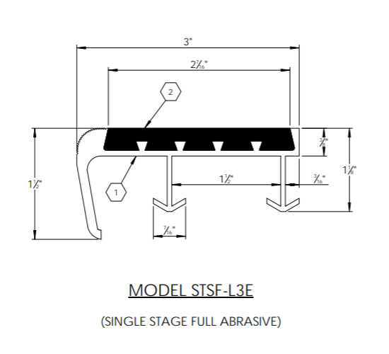 The redesigned Full Abrasive Stair Tread and Nosing is made from an extruded aluminum base with abrasive material locked into the channel. The material is consistent throughout the tread and features a new durable, serrated aluminum nose. Ideal for indoor and outdoor applications.