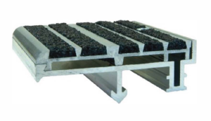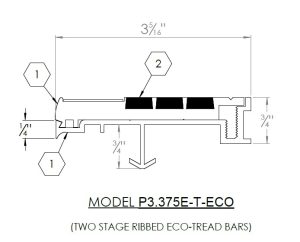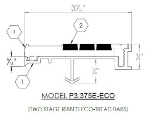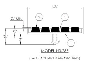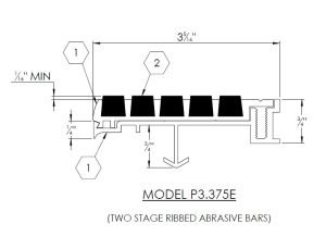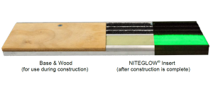 The Nystrom Two-Part Ribbed Abrasive Stair Nosing is designed to save your stair treads during the construction phase. The sub-channel and plywood inserts are installed during the construction phase. When the building is near completion, the temporary plywood tread is replaced with the abrasive or EcoTread™ anti-slip safety tread top.