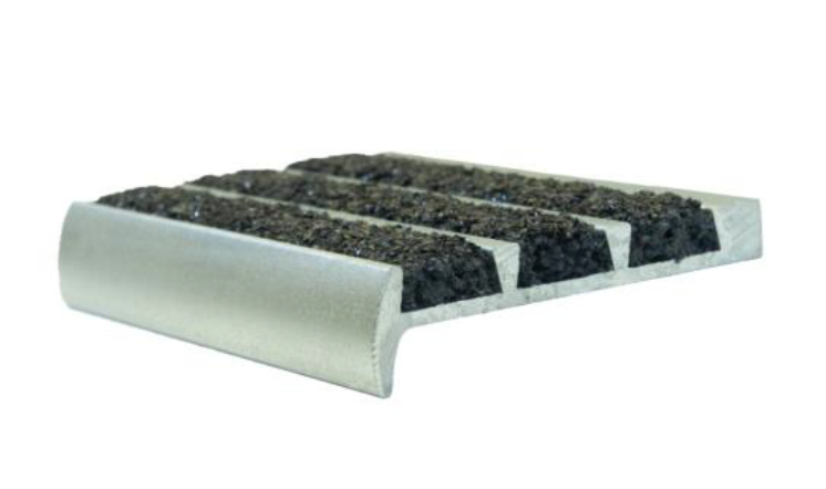 A heat-treated, corrosion resistant, extruded aluminum base with satin lacquered finish. The use of diamond hard aluminum oxide in the filler assures long tread life under heavy pedestrian traffic use. Supergrit® is appropriate for both inside and outside use.