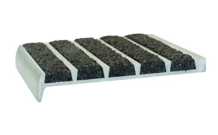 A heat-treated, corrosion resistant, extruded aluminum base with satin lacquered finish. The use of diamond hard aluminum oxide in the filler assures long tread life under heavy pedestrian traffic use. Supergrit® is appropriate for both inside and outside use.