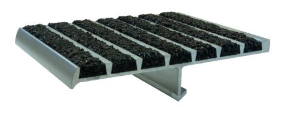 A heat-treated, corrosion resistant, extruded aluminum base with satin lacquered finish. The use of diamond hard aluminum oxide in the filler assures long tread life under heavy pedestrian traffic use. Supergrit® is appropriate for both inside and outside use.